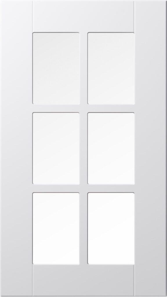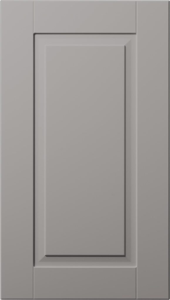 En laminatbänkskiva med stenliknande uttryck lyfter den mjuka grå nyansen i ramluckan och ger lantköket ett ljust och tidlöst intryck. Terrazzo Vit