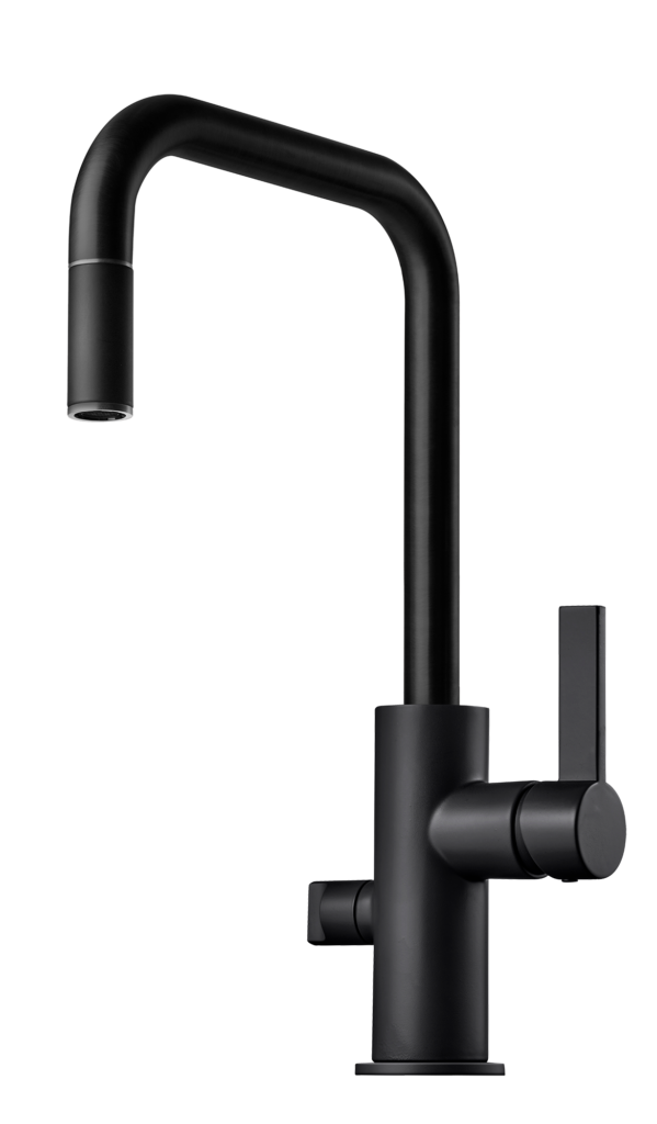 Mixa Easytouch Grafitsvart med luckor ur serien Gryning för att ge mer karaktär till köket.