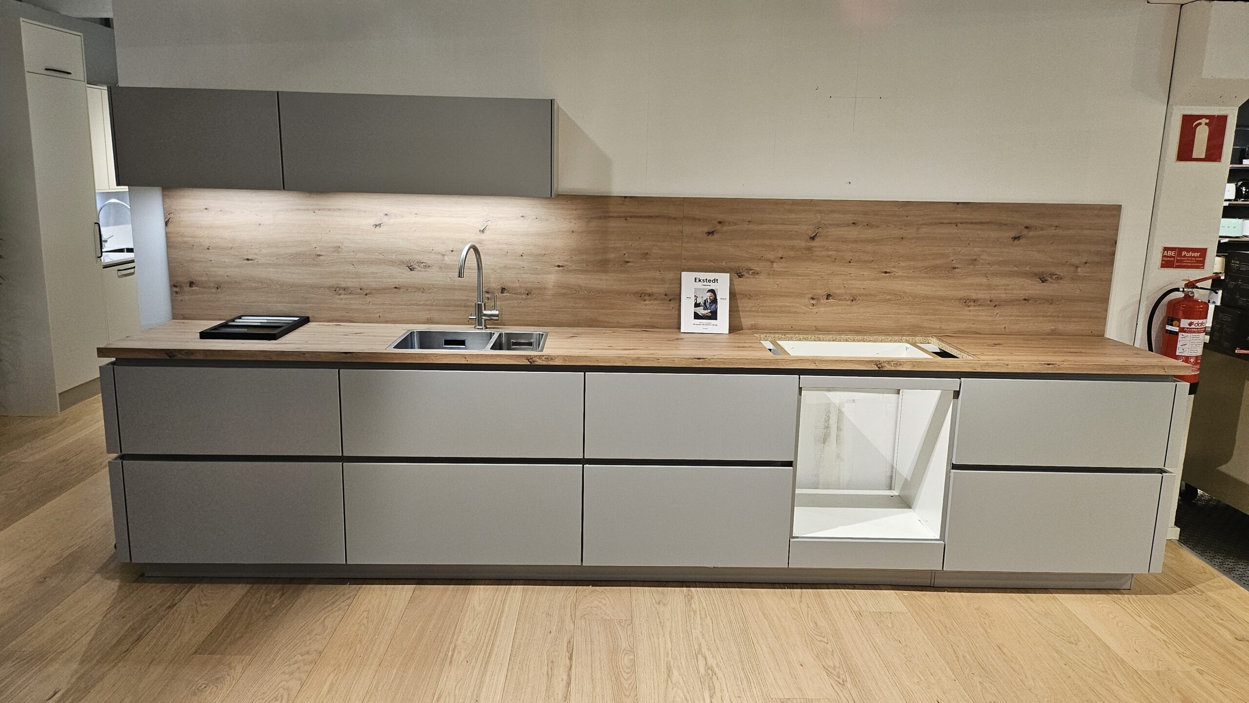 Väggskåp med belysningsplatta i botten