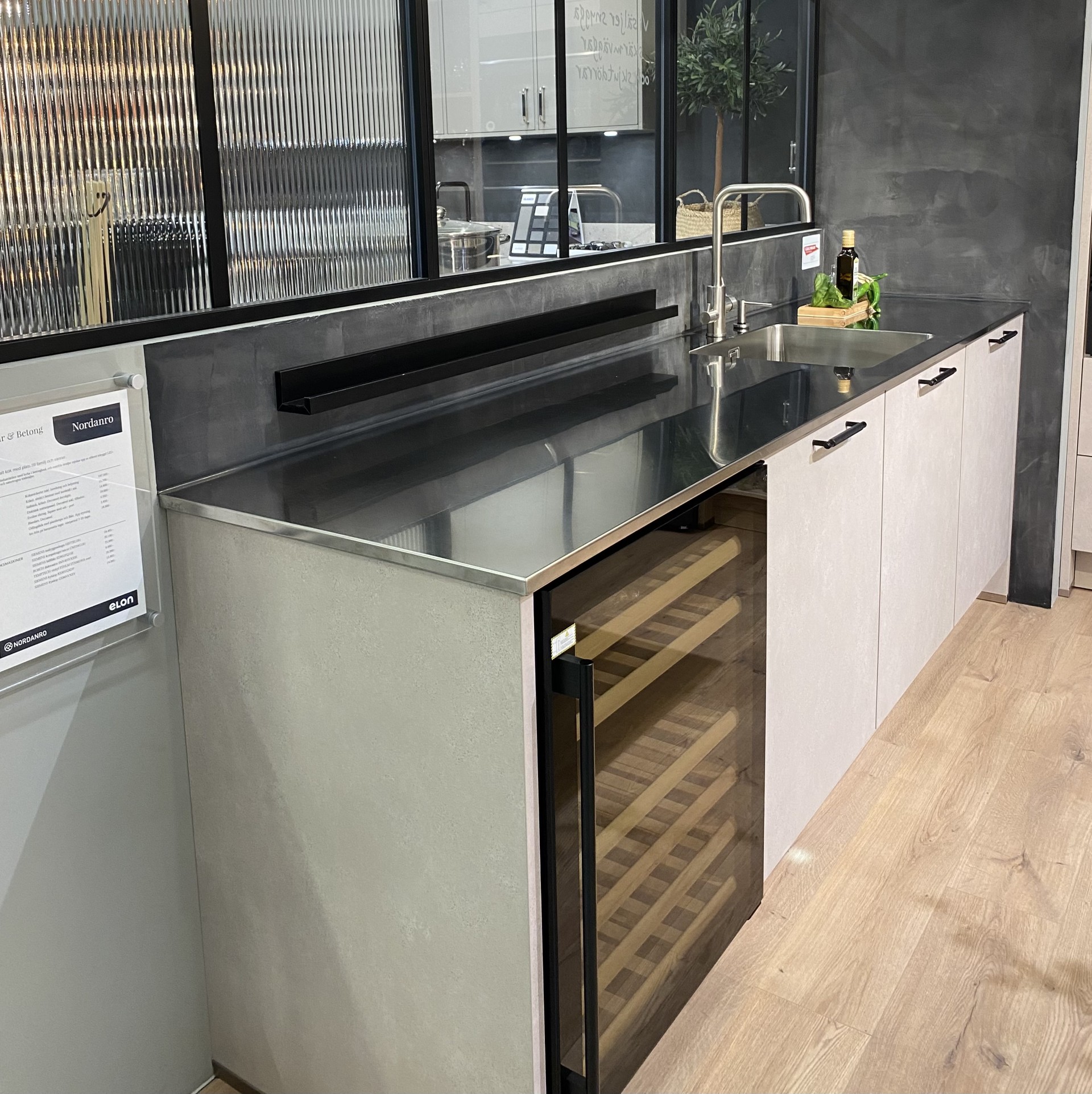 - Bänkskiva laminat och rostfria bänkar från Decosteel med insvetsad diskho. Matchande köksblandare och diskmedelspump ingår.