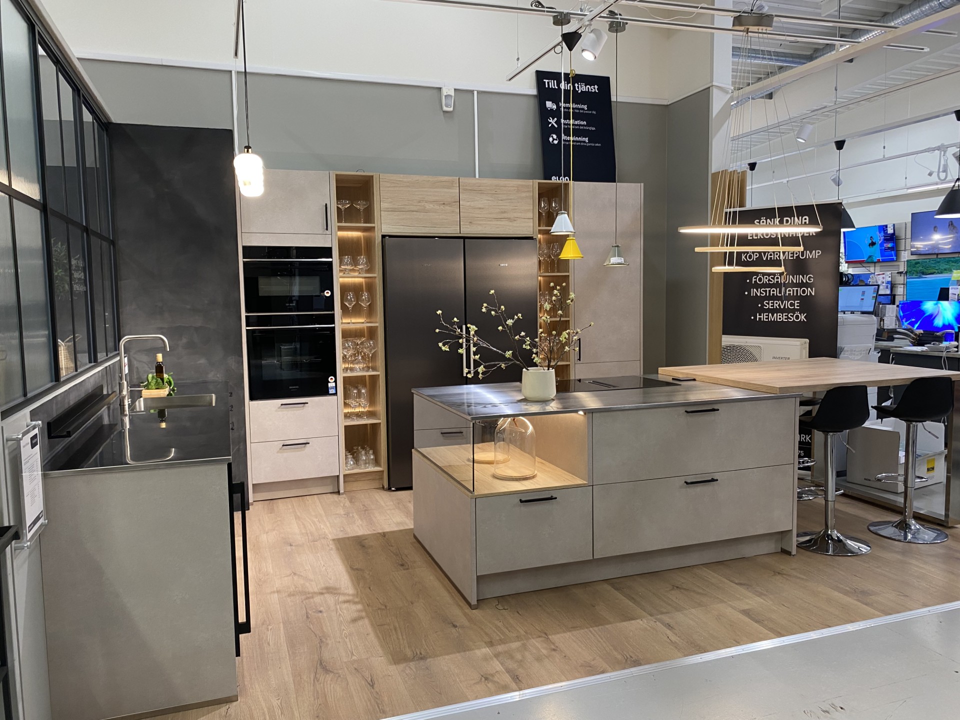 - Köksö med generösa lådor och integrerad belysning.